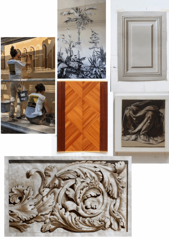 Les peintres en décor du patrimoine sont des intervenants spécialisés du bâti ancien. Ils sont formés dans le cadre du patrimoine sur des missions de raccord en facture et de conception d'ensembles décoratifs.Ils font appel à 3 compétences: celle du peintre, celle du décorateur et celle de spécialiste du patrimoine.